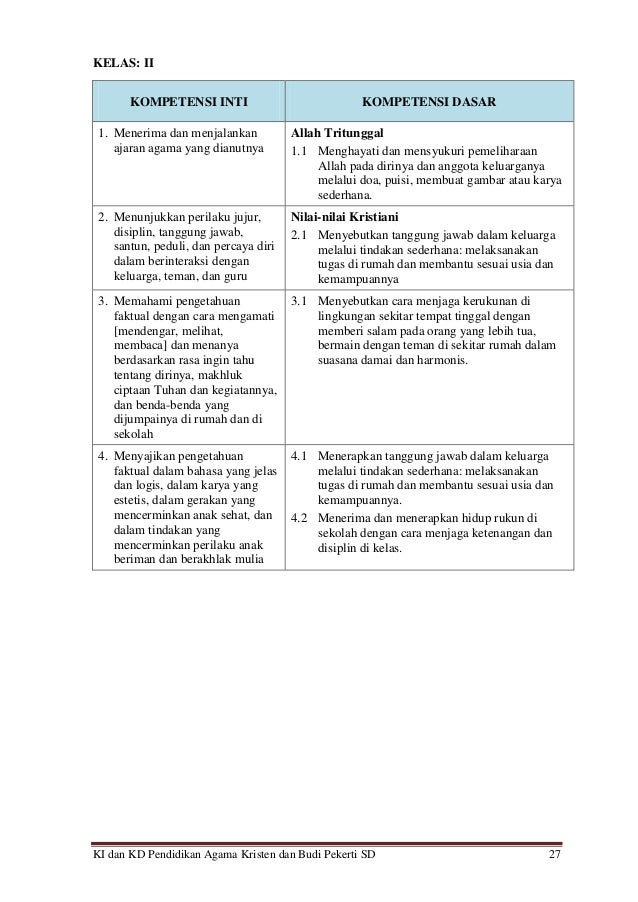 3 Ki Kd Pendidikan Agama Kristen Dan Budi Pekerti Sd Versi 120216 Rtf Kompetensi Inti Dan Kompetensi Dasar Sekolah Dasar Sd Mata Pelajaran Pendidikan Course Hero from www.coursehero.com Pemetaan kd sbdp kelas 3. Kd kompetensi dasar kelas 7 smp semester 1 revisi 2017. Penggunaannya sangat penting dalam merancang setiap ki dan kd yang ada pada silabus k13 sesuai revisi tahun ajaran. Doc silabus sd agama kristen 1 2 3 4 5 6 lianz lipanz. Sahabat dunia pendidikan, pemetaan kompetensi dasar yang akan dibagikan melalui laman ini, merupakan dasar bagi guru dalam menyusun sahabat dunia pendidikan, demikianlah yang dapat disampaikan mengenai pemetaan kd tematik kelas 4 sd semester 2 kurikulum 2013 revisi 2017. Rpp smp pendidikan agama kristen pak kelas 7 8 9 k13 pemetaan kd kelas 4 kurikulum 2013 semester 1 2 sanjayaops berikut yang dapat admin bagikan terkait materi pelajaran agama kristen kelas 3 sd semester 2. Yang dapat mengampuni dan menyelamatkan manusia melalui yesus kristus. Pendidikan agama dan budi pekerti.