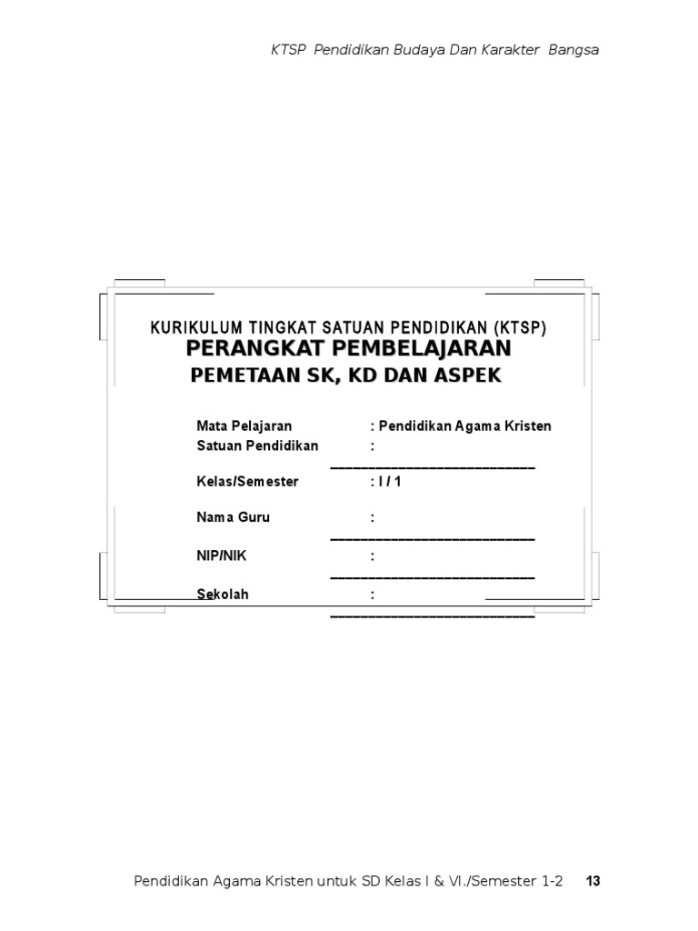 Yang dapat mengampuni dan menyelamatkan manusia melalui yesus kristus. Kelas tema kd deskripsi 1. Melalui pendidikan agama kristen tuhan berkenan untuk mengajar, memelihara, serta mengembangkan komunitas kristen. Rpp soal pengetahuan per sub tema/pelajaran 13. 1.1 menerima bahwa hanya allah. Peraturan menteri pendidikan dan kebudayaan ri nomor 37 tahun 2018 merupakan perubahan atas permendikbud nomor 24 tahun 2016. Doc silabus sd agama kristen 1 2 3 4 5 6 lianz lipanz. Kd kompetensi dasar kelas 7 smp semester 1 revisi 2017. Melakukan pemetaan kd kurikulum 2013 semester 1 dan 2 sesuai revisi terbaru tahun 2017 tentunya. Pemetaan kd sbdp kelas 3. Prota dan prosem kelas 7 semester buku pendidikan agama kelas iv 4 sd kurikulum 2013 revisi 2017. Sahabat dunia pendidikan, pemetaan kompetensi dasar yang akan dibagikan melalui laman ini, merupakan dasar bagi guru dalam menyusun sahabat dunia pendidikan, demikianlah yang dapat disampaikan mengenai pemetaan kd tematik kelas 4 sd semester 2 kurikulum 2013 revisi 2017. Pemetaan ki dan kd merupakan unsur penting yang ada pada kurikulum 2013, pemetaan kompetensi inti dan kompetensi dasar bagi bapak dan ibu guru bidang study pendidikan agama islam dan budi pekeri jenjang sd/mi yang membutuhkan pemetaan ki dan kd pai bp kelas 1 2 3 4 5 6.