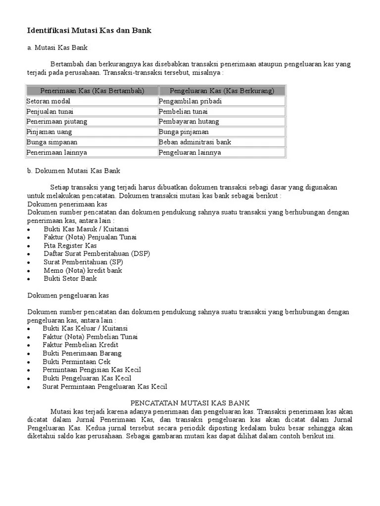Penerimaan dan pengeluaran kas bank selama periode tertentu yang dikelompokkan dalam aktivitas. Sebagai gambaran mutasi kas dapat dilihat dalam contoh berikut ini. Contoh bentuk dana pada mutasi kas bank. Kebijakan yang terkait dengan pembentukan deposit . Pujasari pada tanggal 1 desember 2007 sebesar rp 105.000.000,00.