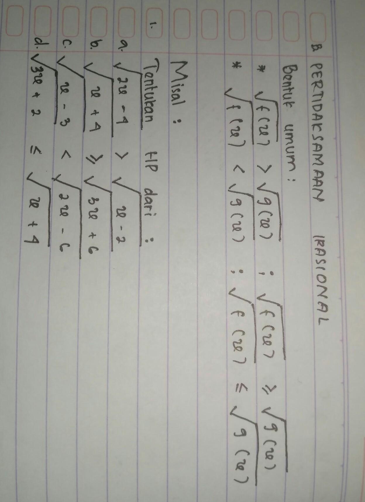 Fungsi yang berciri ini disebut pertidaksamaan berbentuk akar atau pertidaksamaan.