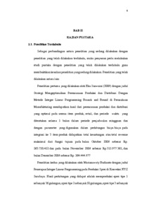 Penentuan media dan durasi penayangan promosi). Aplikasi model mixed integer linear programming untuk pengolahan dan pendistribusian ikan pada industri perikanan (studi kasus: A feasible solution better than or equal to all other feasible solutions. Masalah linear programming dapat dengan mudah diperoleh dengan cara. Perencanaan produksi menggunakan kombinasi model integer linear programming dan model simulasi (studi kasus pt.