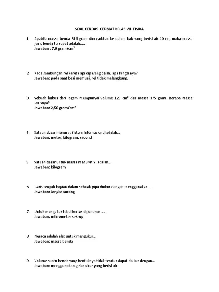 Soal latihan cerdas cermat ipa tingkat smp mts anas